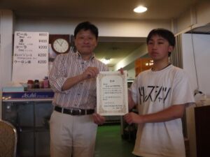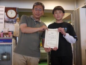 次にクラス(各班の合計点で争う)ごとの表彰を行いました。学年主任から賞状をもらいました。