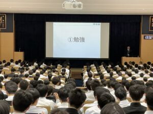 本日5校時に進学講演会が行われ、河合塾の大橋恭彦講師より、内部進学を志望する場合、受験をする場合の2パターンに分けて、今後の学園生活や私生活でどのように過ごすべきか、またどのように学習計画を立てていくべきか等について非常に有意義なお話をしていただきました。大学進学を身近に控え、高校3年生の生徒たちは自身の問題として受け止め、真剣に聞き入っていました。