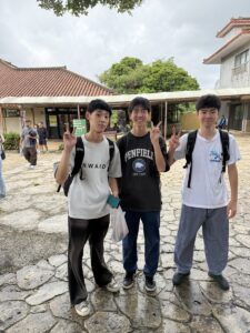 糸満市のホテルを出発して、各班で事前に作成した行動予定にそって見学を行い、名護市のホテルに到着しました。