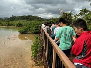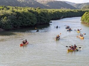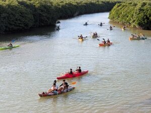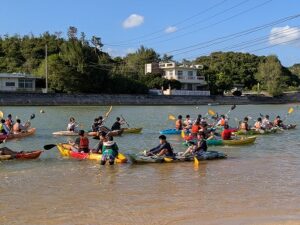 慶佐次川河口付近でマングローブ林観察とカヌー体験を行いました。