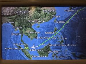 成田を出発して7時間、乗り継ぎ地のクアラルンプール空港に到着しました。