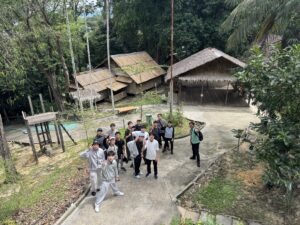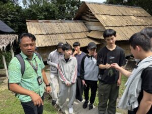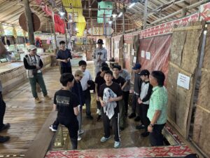昼食前に、サバ州立モスクとサバ州立博物館の野外展示を見学しました。州立博物館では、サバ州に今も暮らす原住民が、かつて暮らしていた家の造りの展示から、生活する場所による構造の違いを学びました。また野生の虫除けの植物について学びました。