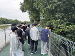 昼食の後は、市内北部のマングローブを訪れ、汽水域の動植物の観察を行いました。ワニの生息地ということで、遊歩道からワニ探しを行う生徒をおりましたが、残念ながら発見できませんでした。