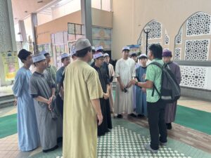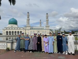 その後、美しい建物で有名な「Masjid Bandaraya Kota Kinabalu(コタキナバル市立モスク)と、中国寺院の「普蛇寺」を訪れました。市立モスクではトーブを着用し、内部の見学を行いました。ガイドの方からキリスト教徒の割合も高いことなどの解説も受け、マレーシアの多文化社会の一面を感じた生徒も多かったようです。