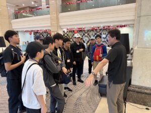 朝のミーティングを行い、いよいよ本格的に研修開始です。本日の最高気温は30℃の予想です。