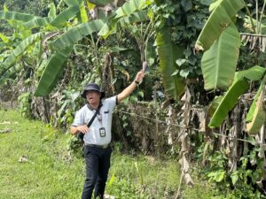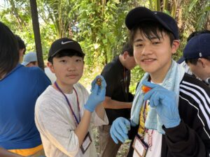 さらには周辺に植えられているバナナなどの食用植物について解説を受けました。バナナの受粉をコウモリが担っていることを知り、驚いている生徒が多数いました。