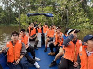 午後はクリアス川にてリバークルーズを行い、マングローブ周辺の動植物の観察をしました。