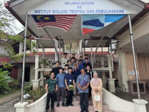 午後は明治大学の協定校であるマレーシア国立サバ大学内のInstitut Biologi Tropika dan Pemuliharaan (IBTP)を訪問しました。まずはGaleri Borneensis(ボルネンシス博物館)を見学し、学芸員の方からボルネオ島の動植物や昆虫についての説明を受けました。