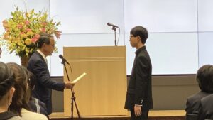 12月3日(水)中野区役所にて本校の中学3年生の生徒が2名「中学生の税についての作文」で表彰され、式典が挙行されました。